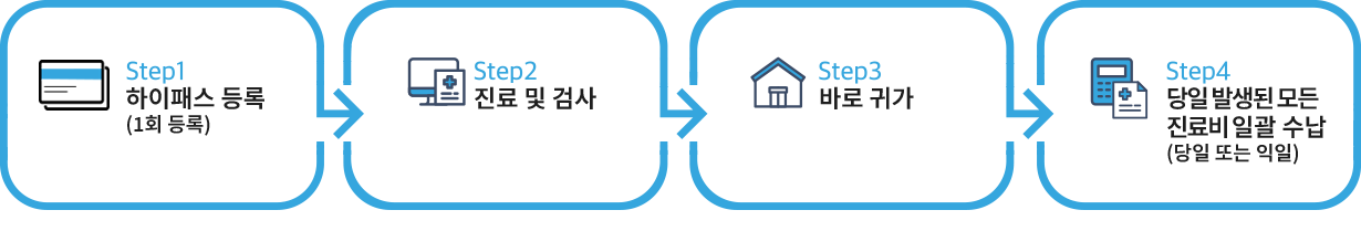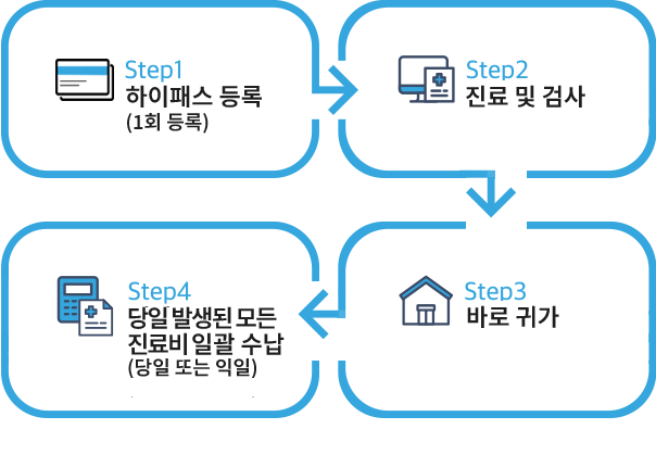 결제용 카드(신용카드 또는 체크카드)를 사전에 등록하여 진료 및 검사 후 수납 창구 방문 없이 자동으로 수납•결제되는 빠르고 편리한 서비스입니다.